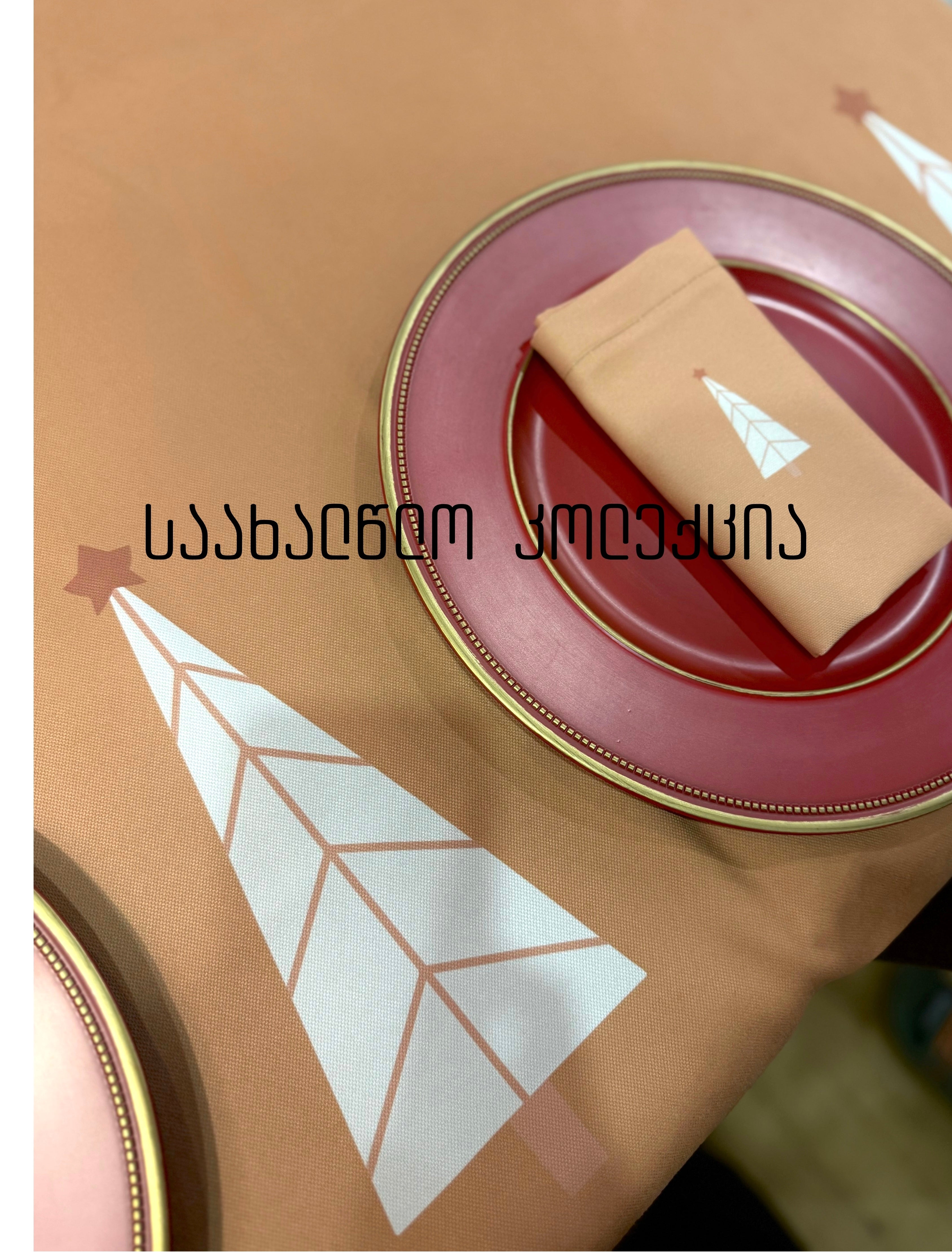 საახალწლო ნაკრები ბეჟი სუფრით და ხელსახოცებით
