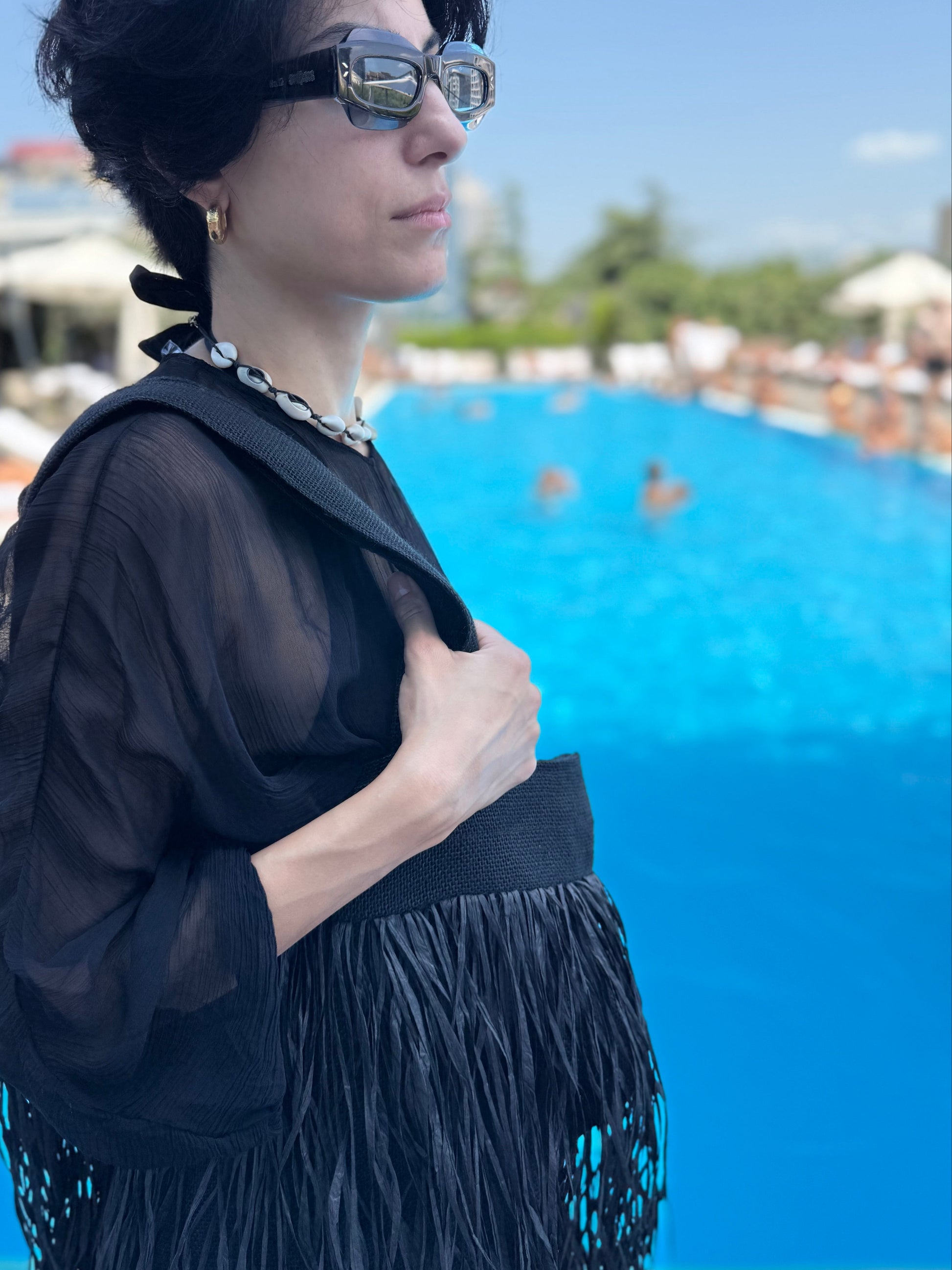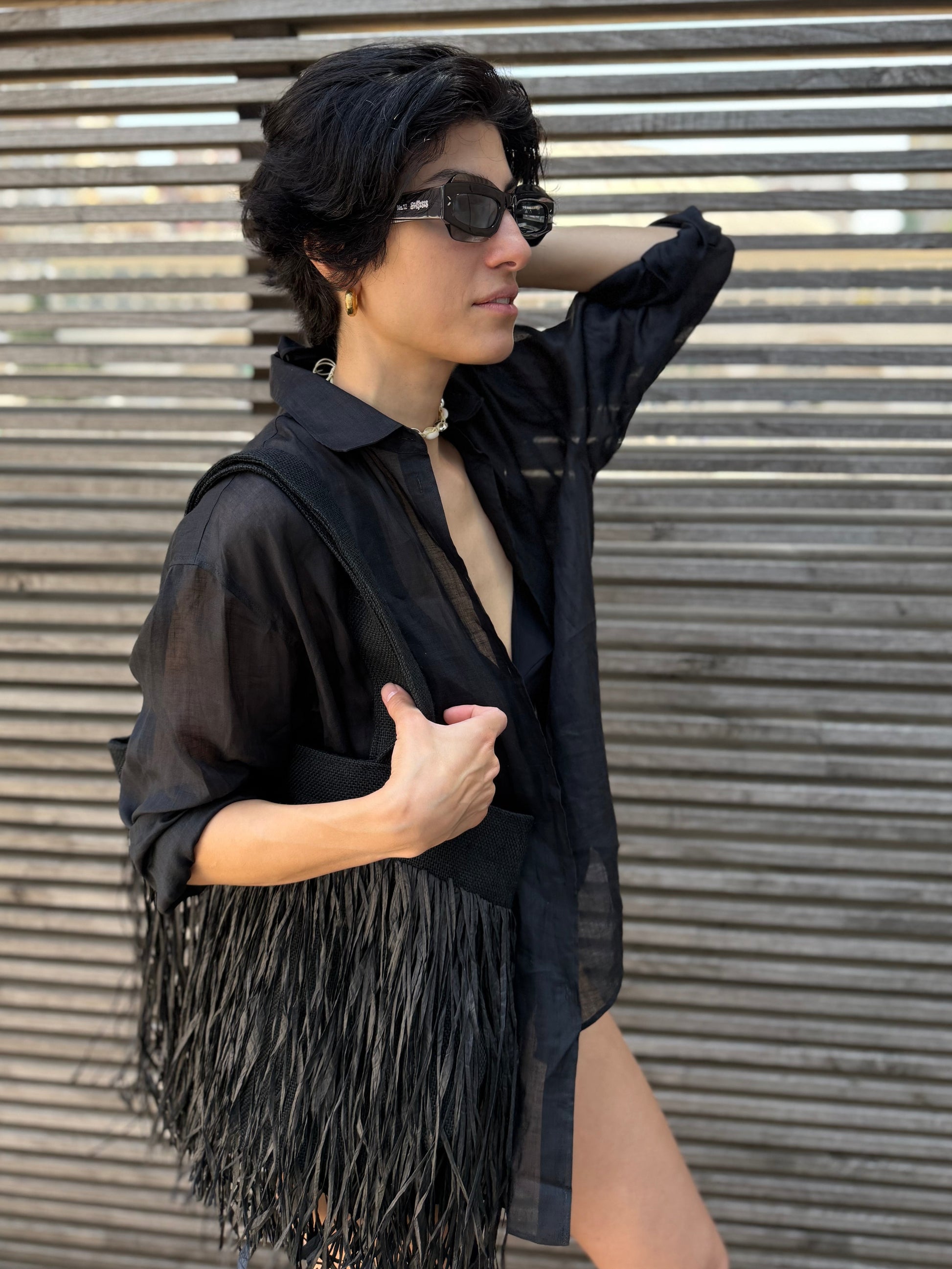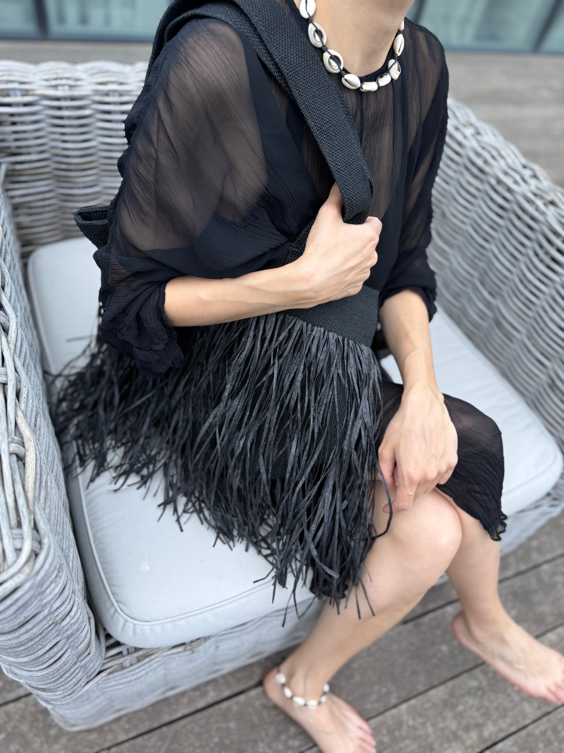 • Raffia fringe bag