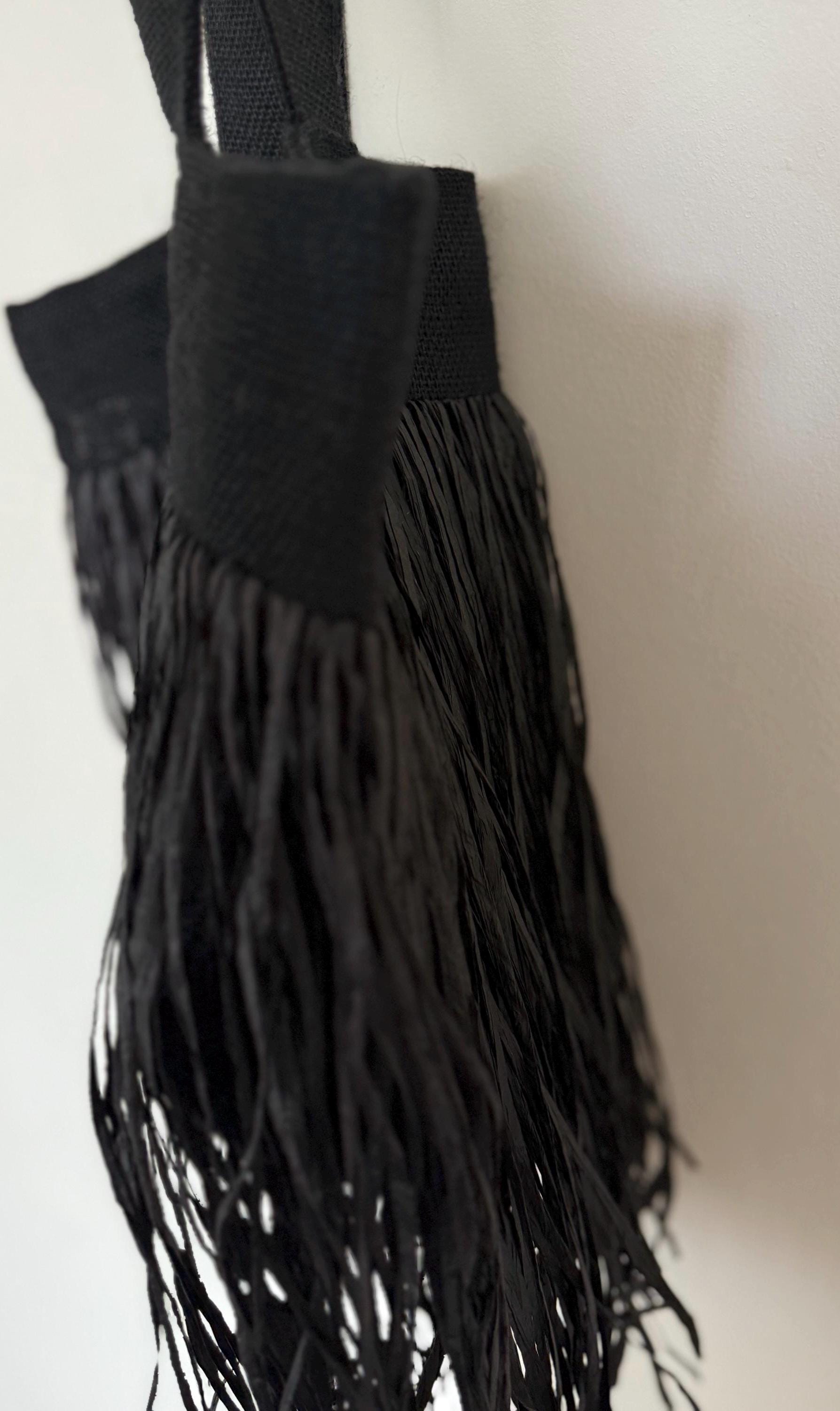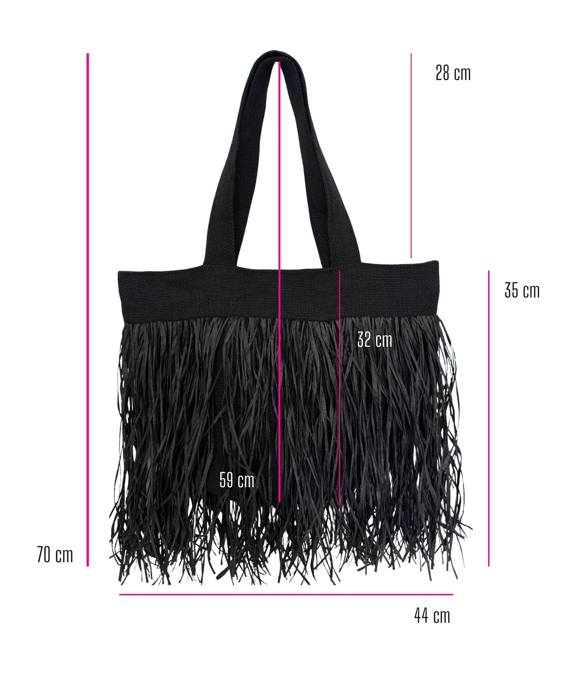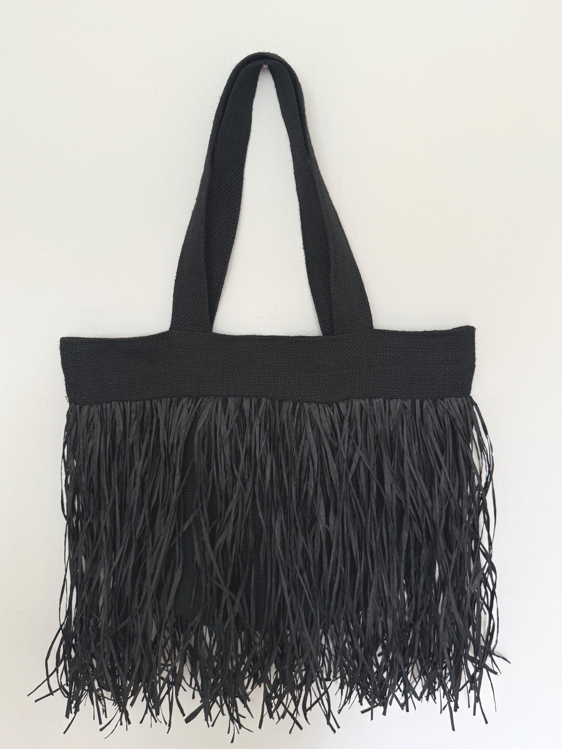 • Raffia fringes are on both sides of the bag